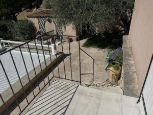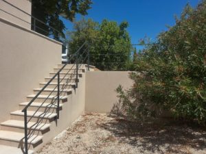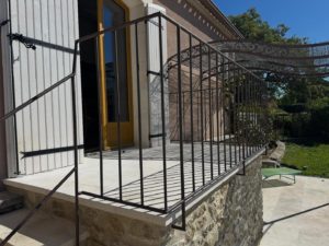 Design, création et pose de garde-corps acier et d’une main courante afin de sécuriser l’escalier et la terrasse de notre cliente