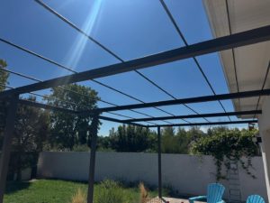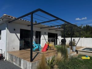 Création, design et pose d’une pergola sur mesure, d’un garde-corps & d’une marquise… Finition Thermolquée