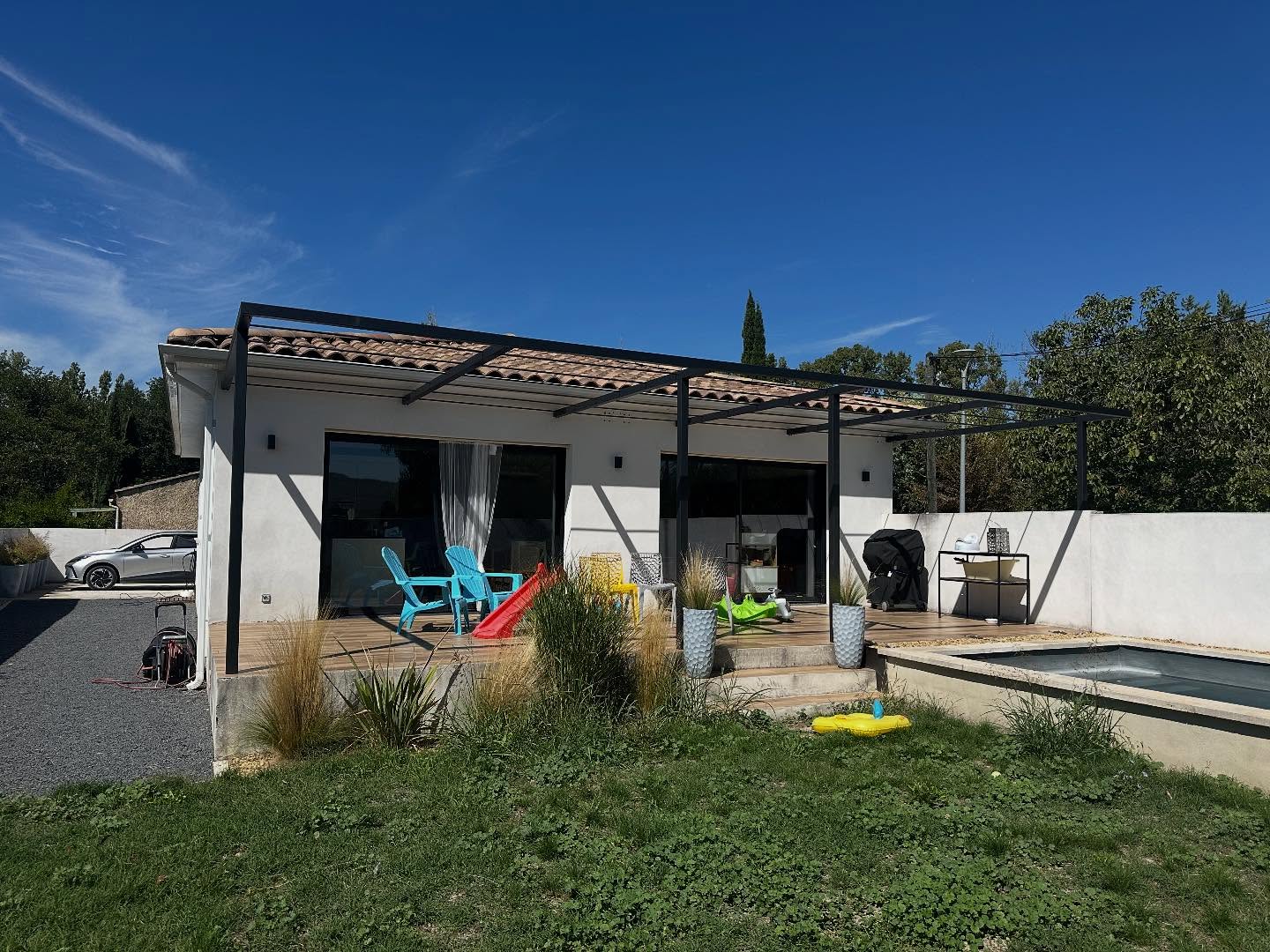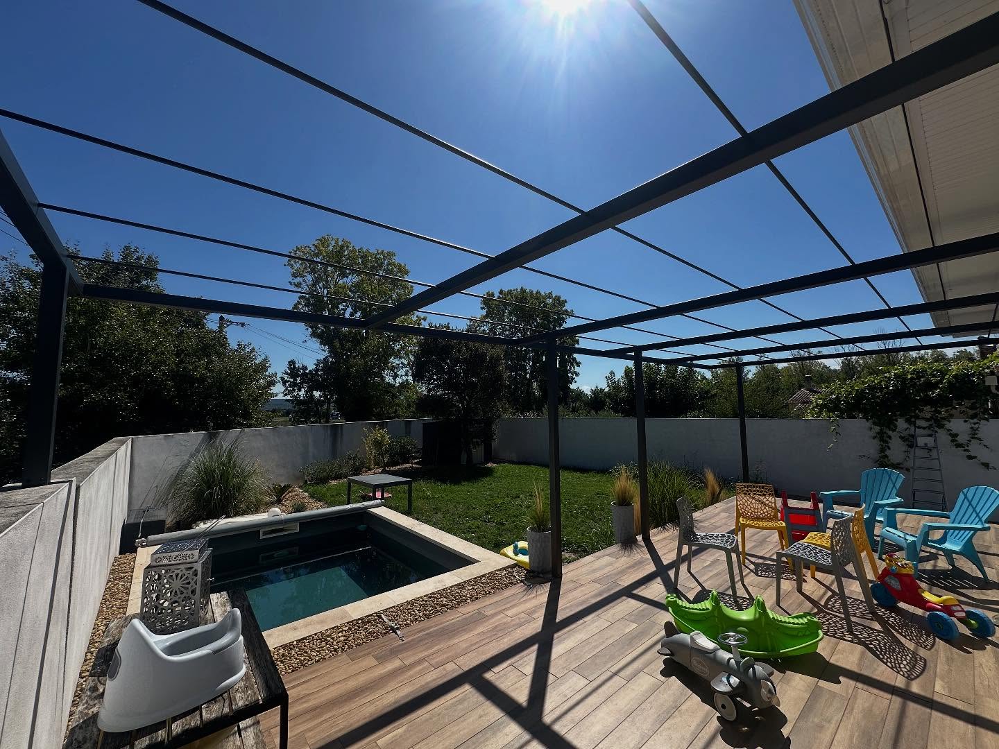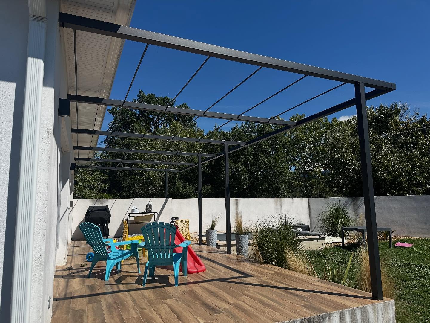 Création,design et pose d’une pergola sur mesure… Finition Thermolqué par Thermolack La peinture durable.