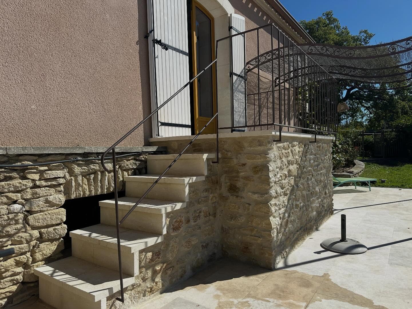 Design, création, et pose de garde corps acier et de mains courantes afin de sécuriser l’escalier et la terrasse de nos clients