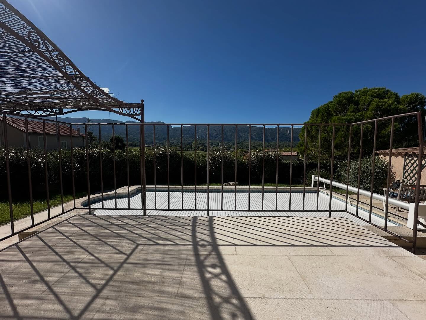Design, création, et pose de plusieurs gardes corps, d’une pergola et d’un portillon coulissant afin de sécurisé l’accès à la piscine de nos clients.L’ensemble a était entièrement réalisé dans notre atelier finition thermolaqué par Thermolack La peinture durable RAL 2100 Sablé.